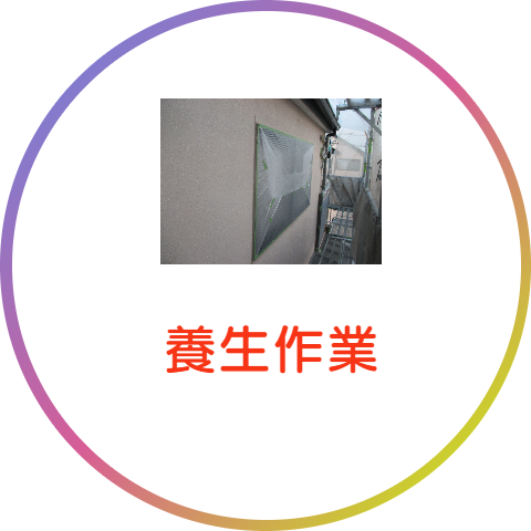 養生作業です。養生とは、塗料が窓や塗装をしない箇所に付着しないように、ビニール・紙テープ(マスキング)で覆ってしまいます。高圧洗浄後はよく乾燥させるため、冬の場合は、洗浄後、1日乾燥の為作業をお休みさせることもあります。サイディング壁の場合は、コーキングの撤去・打設作業を養生前に行います