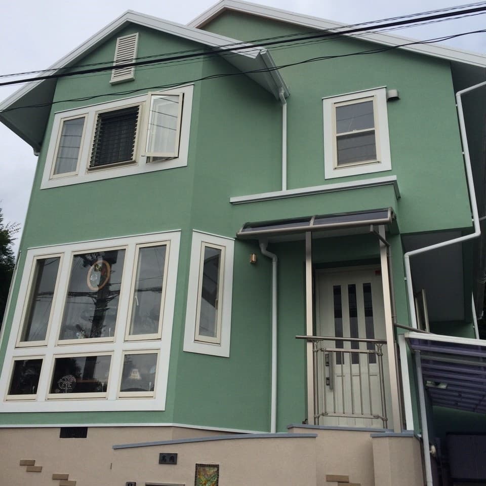 施主様は元々グリーンだった色がとても気に入っていて、同じような色にしたいとのご希望でした。屋根はオレンジ系での塗装に。GAINAは光が当たると白っぽくなるのが特徴的で、時間帯で色の具合が変わりとても面白いというお言葉をいただきました。仕上がりに喜んでいただき弊社も感謝でいっぱいです♪